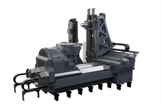 齊重?cái)?shù)控的PB130L數(shù)控刨臺(tái)臥式銑鏜床,基礎(chǔ)件采用高強(qiáng)度鑄鐵,結(jié)構(gòu)經(jīng)有限元分析優(yōu)化,保證機(jī)床的剛性和精度穩(wěn)定性;中掛式主軸箱采用熱力對稱設(shè)計(jì),安裝于龍門框架式立柱中,減少熱變形的影響,確保高精度和動(dòng)力學(xué)性能;工作臺(tái)采用圓光柵進(jìn)行直接測量,可實(shí)現(xiàn)任意角度定位,保證調(diào)頭鏜孔的同軸度;回轉(zhuǎn)測量選用進(jìn)口圓光柵進(jìn)行直接測量。閉環(huán)控制,可實(shí)現(xiàn)任意角度定位,分度精度高,可保證調(diào)頭鏜孔的同軸度。