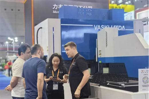 現場多款主力機型集中展出,其中專為市場量身定制、主打高性價比的VASKILEEDA折彎中心,無疑是全場的人氣擔當。它憑借個性化定制、實用性能拉滿以及超高性價比,吸引了大批觀展客商駐足咨詢、深度了解,關注度持續飆升。