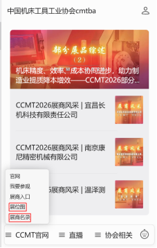 通過協會官方微信公眾號(中國機床工具工業協會cmtba),點開公眾號菜單,點擊進入“展位圖”或“展商名錄”,即可進入相關網頁進行查詢、規劃。